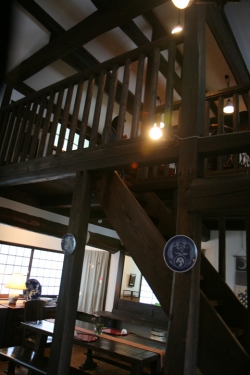 ここは以前、住宅ではなく2階建ての古い納屋だったところだそう。足場が悪くなっていた2階の床を落とし、むき出しになった柱などを磨き上げ、趣のある建物として再生させたのです。4年ほど前まではここにショップコーナーがあったそうすが、お客様が増えるにつれ、ショップコーナーを新たに作って(下画像)移動し、ここにテーブル席を設置したり、ウエイティングバーを設けるなど、お客様のニーズに合わせるようにゆっくりと変化を遂げ、現在はこのようなスタイルとなっているそうです。