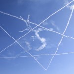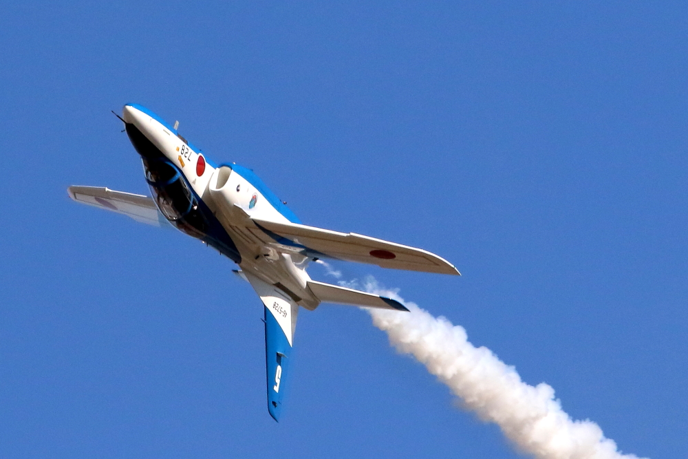 上空を旋回、青空に白いスモークを放ちながらハートを描いたり、星を描いたり、ブルーインパルスの飛行展示はあっという間に終わりに近づきました。