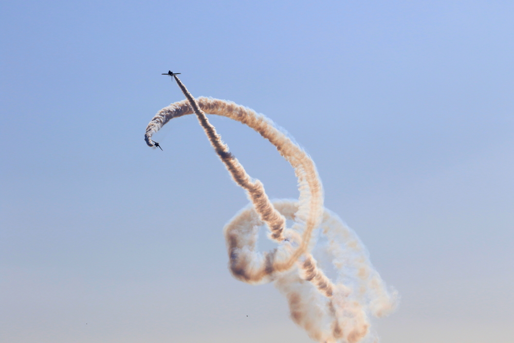 ショーのクライマックスは会場正面からのコークスクリュー。2機の機体が描く絵は龍のように見えました。