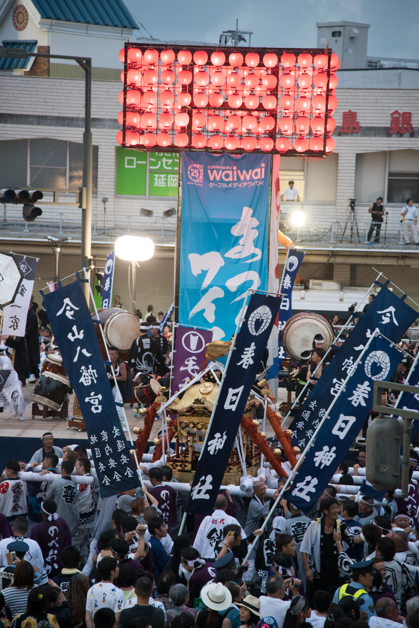 今年で40回目という節目を迎えた『まつりのべおか』では、第1回目からの精神である「あたたかい心、ふるさとを思う心、感謝の心」を改めて強く重んじ、郷土・延岡をより一層親しみ、喜んでもらえるようにと様々な企画が催されました。7月23日(土)のまつりのべおかでは、島浦町から初めてお神輿が海を渡り、出会い神輿に登場。さらに三北合併10周年という節目の祝い神輿や子供みこしが参加し、大いに盛り上がりを見せました。
