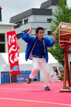 市役所前メインステージでは「がんばろう九州」をテーマに、ばんば太鼓コンクール、延岡・熊本・鹿児島の和太鼓チームによる和太鼓演奏・初共演が行われ、郷土愛溢れるステージとなりました。