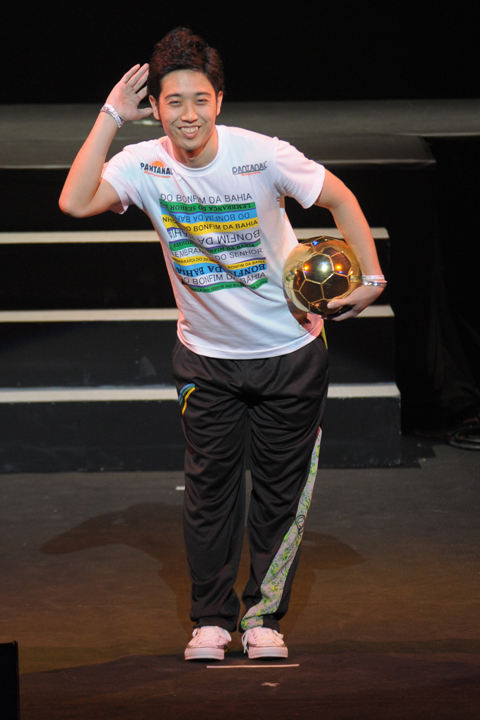 重厚感漂うステージ上の雰囲気ががらりと変わり、太鼓を抱えて現れた「男の浪漫」。歌ありダンスあり笑いあり、体を張った熱血パフォーマンスであっという間に観衆を自分達の世界へと引きずりこんでしまった!そしてステージデザインベストは、なんと宮崎の「日向・扇屋」プレゼンツ!和がらのベストに注目☆
