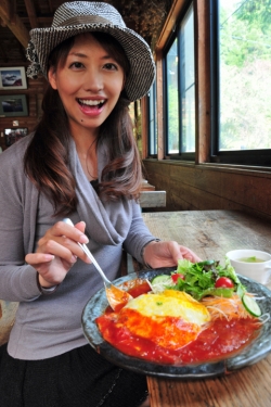 ソースや、卵など、メインのオムライスだけでなく、サラダに使う野菜も自家製のものや、地元でとれた新鮮なものにこだわっています。一緒にいただくお水も、久住高原の湧き水です。久住の自然の恵みを、隅々まで感じられました♪