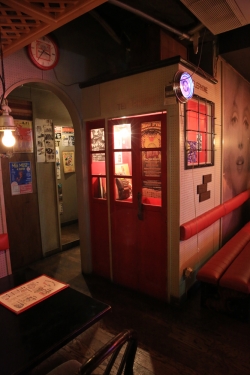 店内に入ると、コンクリートむき出しの壁にギラギラ光るネオンが、ロックカフェ風で印象的。昭和レトロな雰囲気と現代のデザインが混在したような、カウンターのディスプレイや店内の雑貨、広告ポップが織りなす独特な空間に魅了されます。