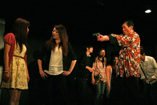 ▲「森沢聞こえるか?」「はい聞こえます」「冒頭のシーンをラストに変更だ!そして奴らを芝居上の犯人として追い込む!」「はい!」「今から照明の設定を説明する、あわてるな!」「は、はい!」「設定が終わったら幕はきっかり3秒であける、いいな!定刻でいくぞ」「あっ、はい!」