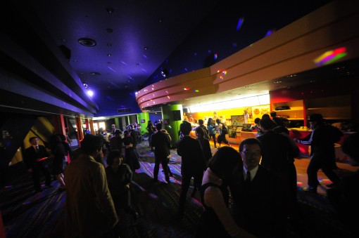 「四年半閉じていましたけど、綺麗だったんです。とっても。ただ問題は客席とスクリーンが取り外されていて、階段式フロアーの大きなシアター以外は、床が斜面であるということなんですね。 ただ私たちプロフェッショナルから考えればそれはそれで非常に面白いと思いました。そしていざここをオープンすると街の人たちの反応がすごかったんですね。“今日映画館が開いてる!”と。閉館後のありのままの状況の中で、そこに簡易な照明・音響・映像、身体を用いてイベントを行ったのをオーナー企業の担当者関係者がご覧になって、今後本牧地区のコミュニティ施設として開いていきたいというお話もあり、映画館跡地の再生計画がスタートしました」