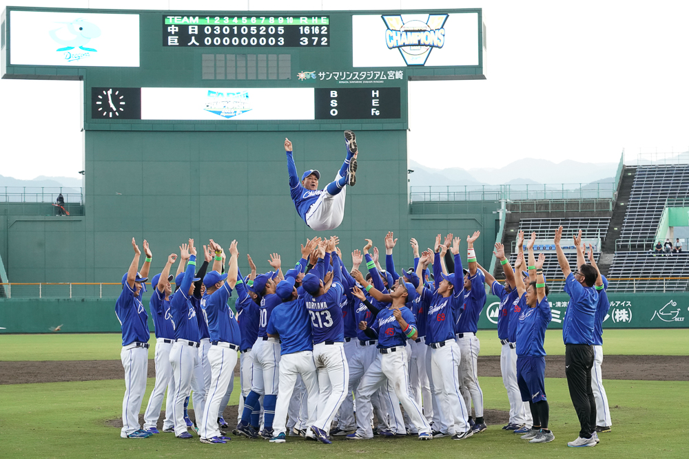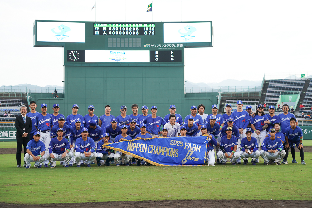 今年もフェニックスリーグ開催を前に行われた2025年プロ野球ファーム日本選手権は、中日先発仲地が5回1/3 無失点の好投。打線もファーム日本選手権史上最多タイ16得点を奪い中日が16-3で中日が巨人を下して14年ぶり7度目のファーム日本一を飾った。