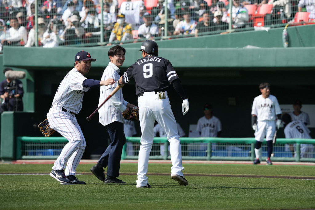 侍ジャパン初実戦となる「ラグザス 侍ジャパンシリーズ2026」壮行試合・ソフトバンク戦(ひなたサンマリン宮崎)が2月22日行われた。試合は坂本、森下、佐藤の阪神勢の活躍で7回降雨コールドで13-3で侍ジャパンが勝利した。