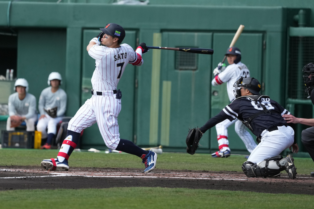 3回裏には坂本誠志郎(阪神)の2点本塁打、5回には佐藤のタイムリー二塁打、森下の2ラン本塁打などで5点を追加した。