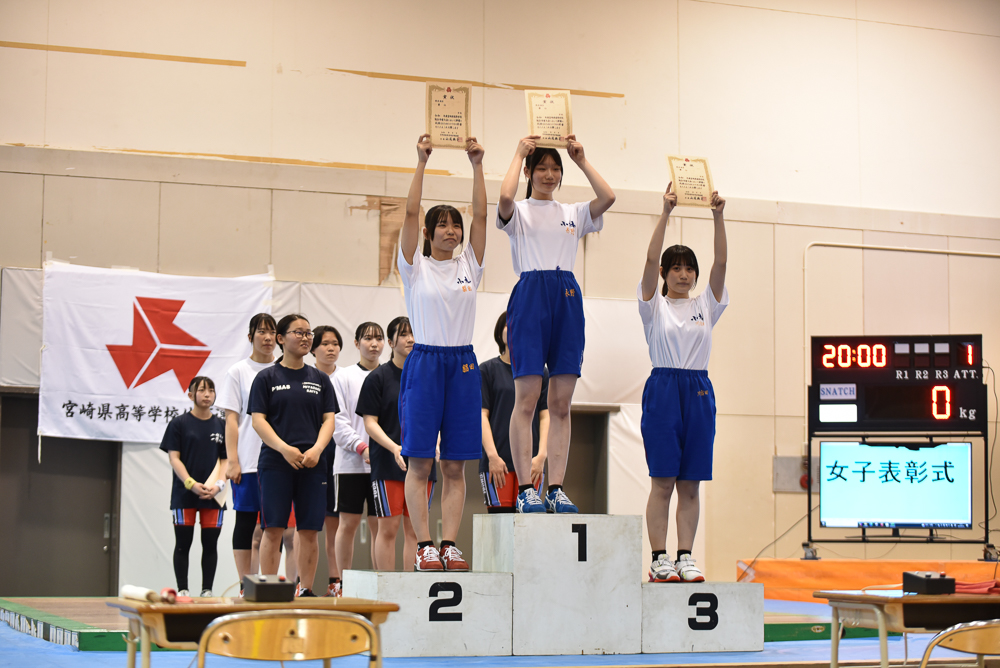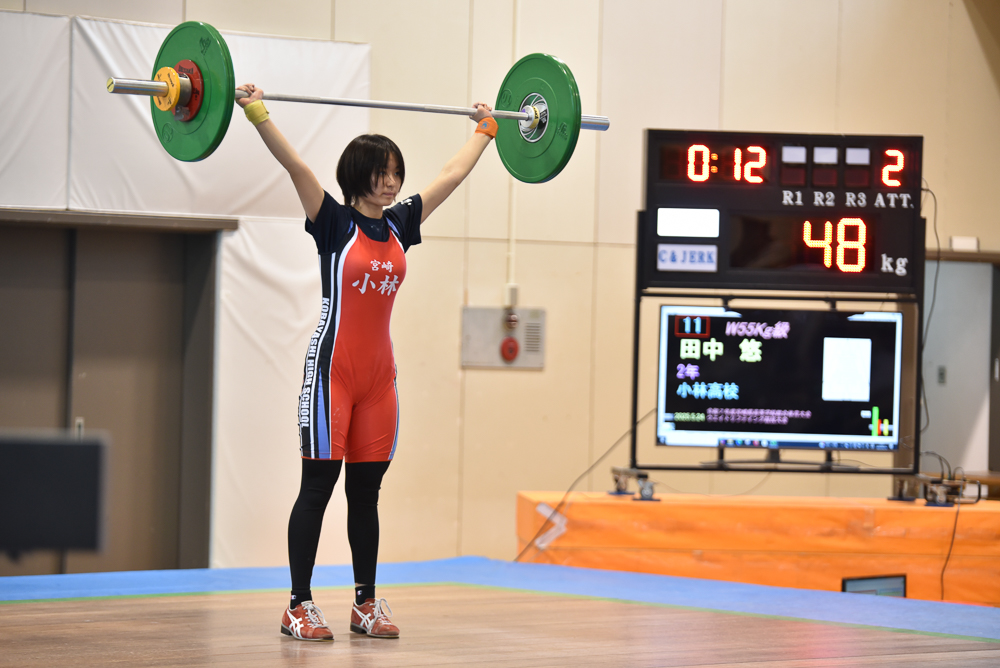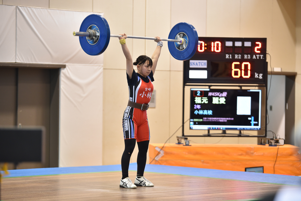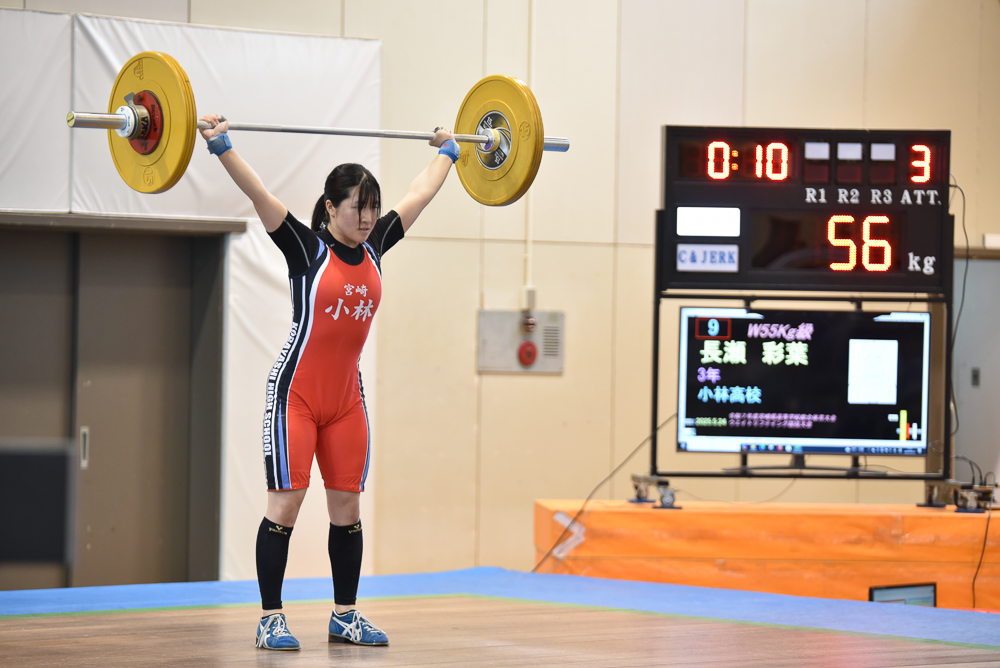 宮崎国体に向けて強化が進むウェイトリフティング競技、今大会では女子のエース川﨑琉愛(小林)がスナッチ58㎏、ジャーク74㎏、トータル132㎏で県新記録、県高校新記録、大会新記録を達成するなど、合計24個の大会新記録が樹立された。また2025米子インターハイでは川﨑琉愛(小林)がジャーク57kg(1位)スナッチ75kg(1位)トータル132kg(1位)の成績で全国高等学校女子競技会に続き、二冠を達成。また男子では+102kg級に出場した永前大輝(小林)がS.116kg(3位)C&J.128kg(9位)T.244kg(5位)で入賞した。