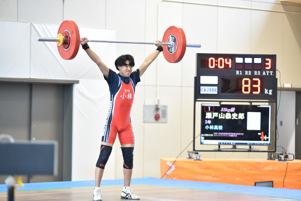 第1位 瀬戸山恭史郎(小林)合計186㎏ ※スナッチ83/トータルで大会新記録