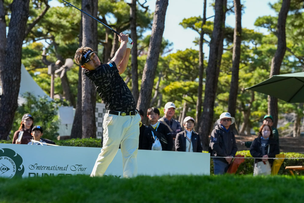 「気づいたら終わってました。あまりトラブルもなく淡々と出来た感じでした。スタート前から3アンダーってのはこだわってて、あんまり人のことを気にしないで。ダンロップはスリクソンがブランドが立ち上がった年から僕は契約しているので、24年くらい経つと思うんですけど、その1年目から僕も24年スリクソンと共に来ているので、そういう部分ではいい形・いい結果で恩返し出来たらなということは言いたいけど、そればっかりは分からないので(明日も)楽しみながらやればいいかなと思います。」