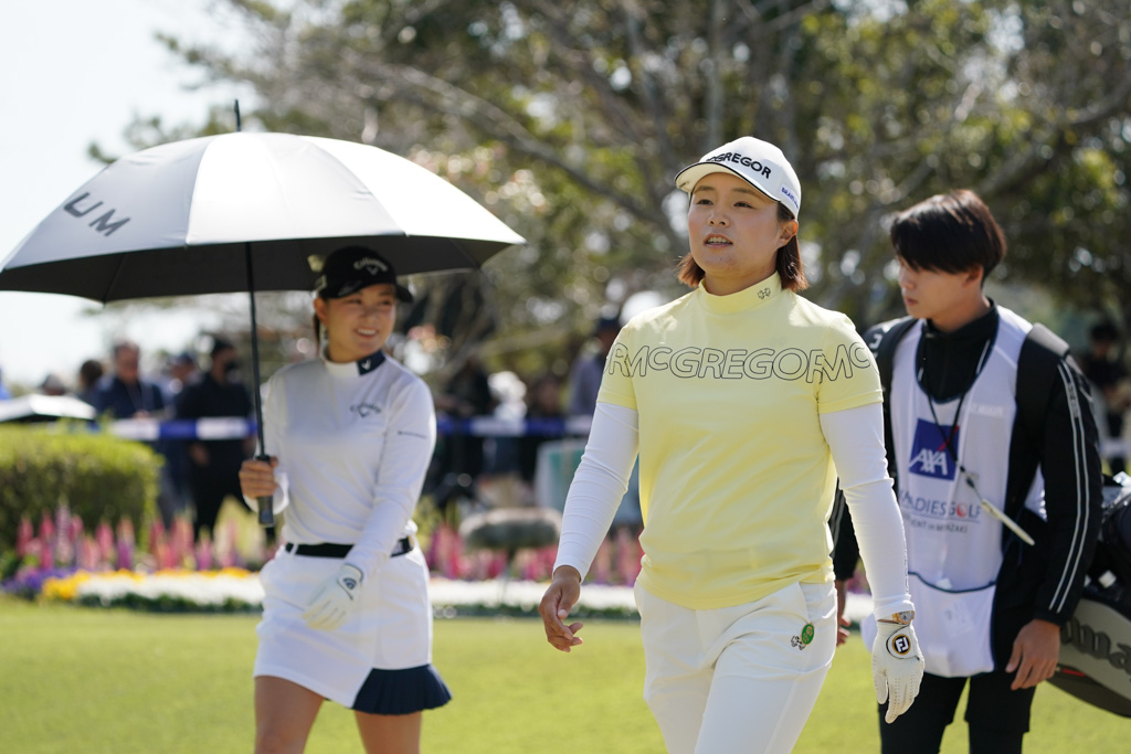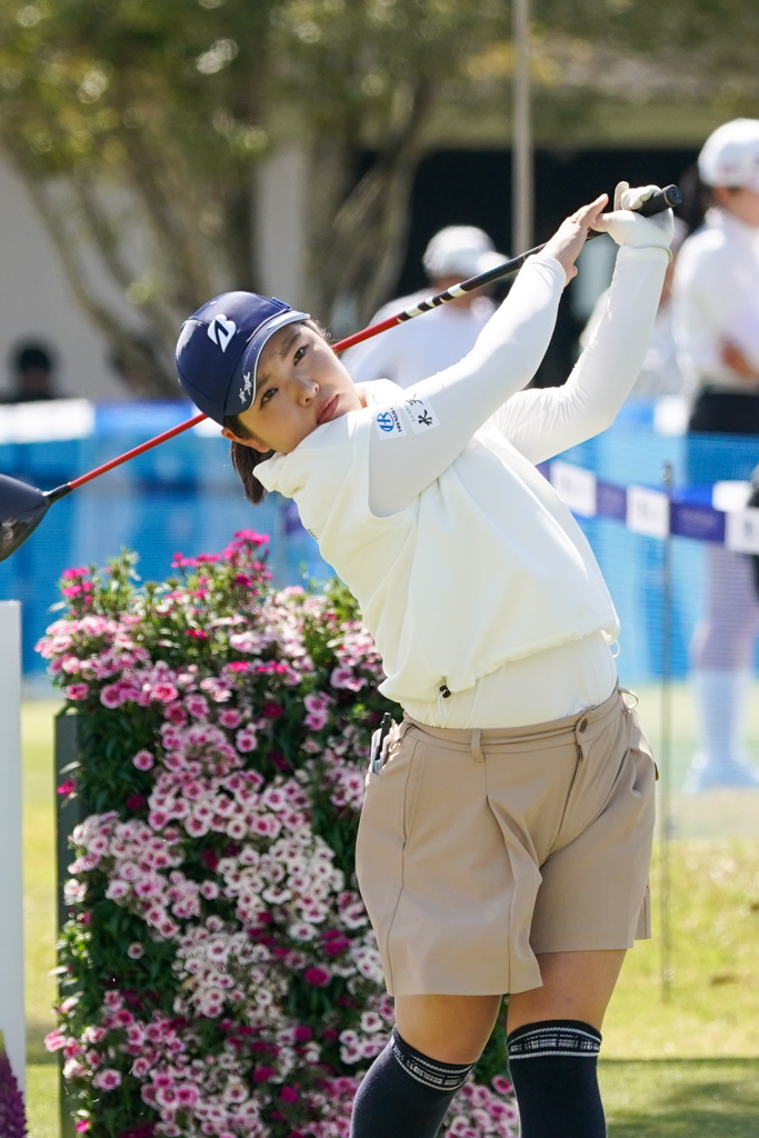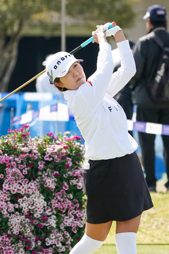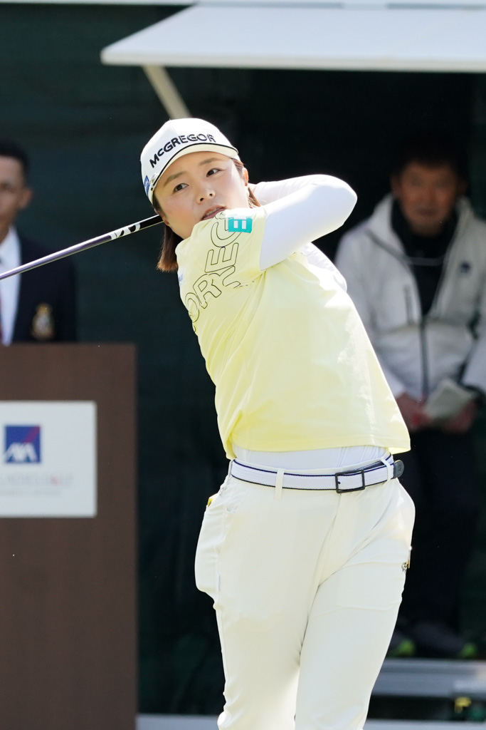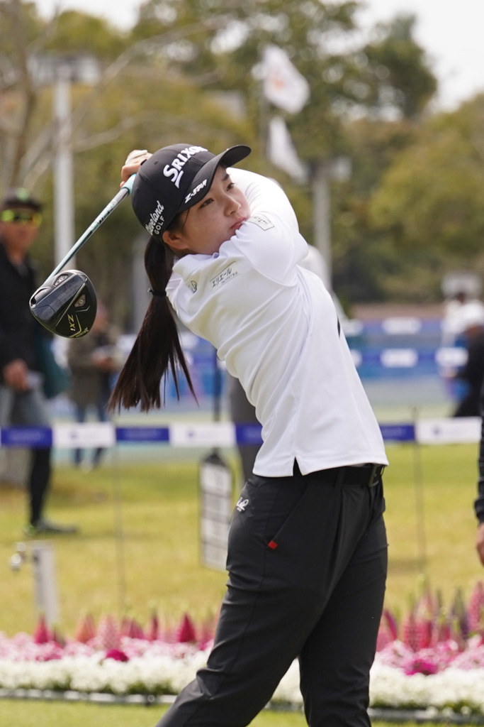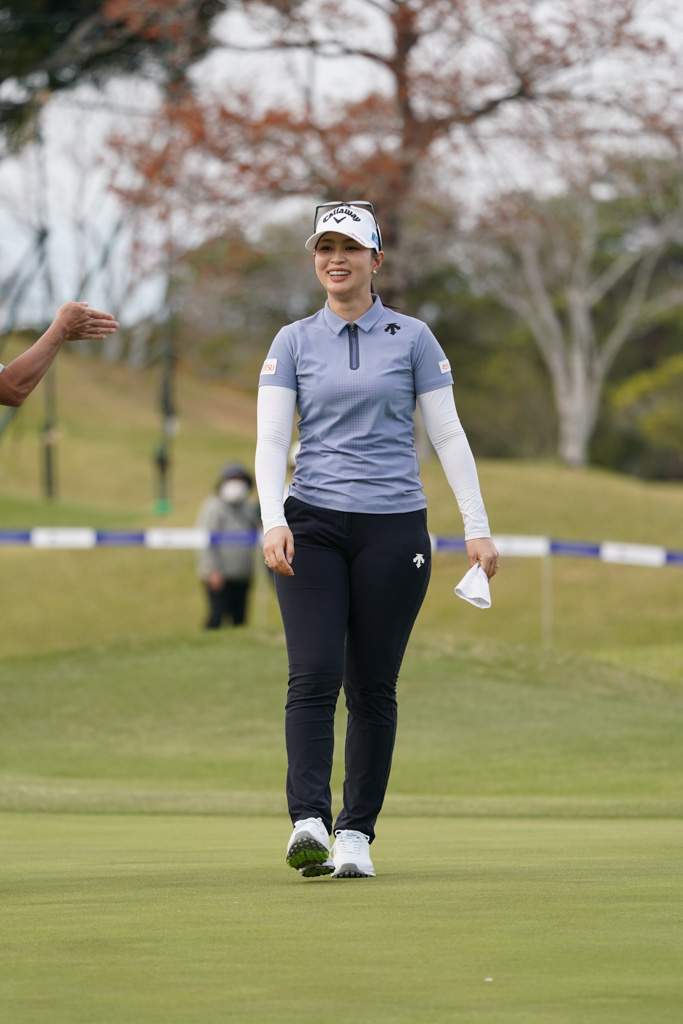 「出だし3ホールのバーディーから始まって、いい流れのまま18ホール回れました。大好きな宮崎で初日からいい天気の中、多くのギャラリーの皆さまの前でプレーできたことも幸せです。(宮崎とは)色々な縁がありますが、私が初めて日本に来た時から日本と韓国のスポーツ交流をしたこともあり、宮崎の保育園で円がある子どもたちが多いので、いいプレーを見せたい。宮崎は好きです。」