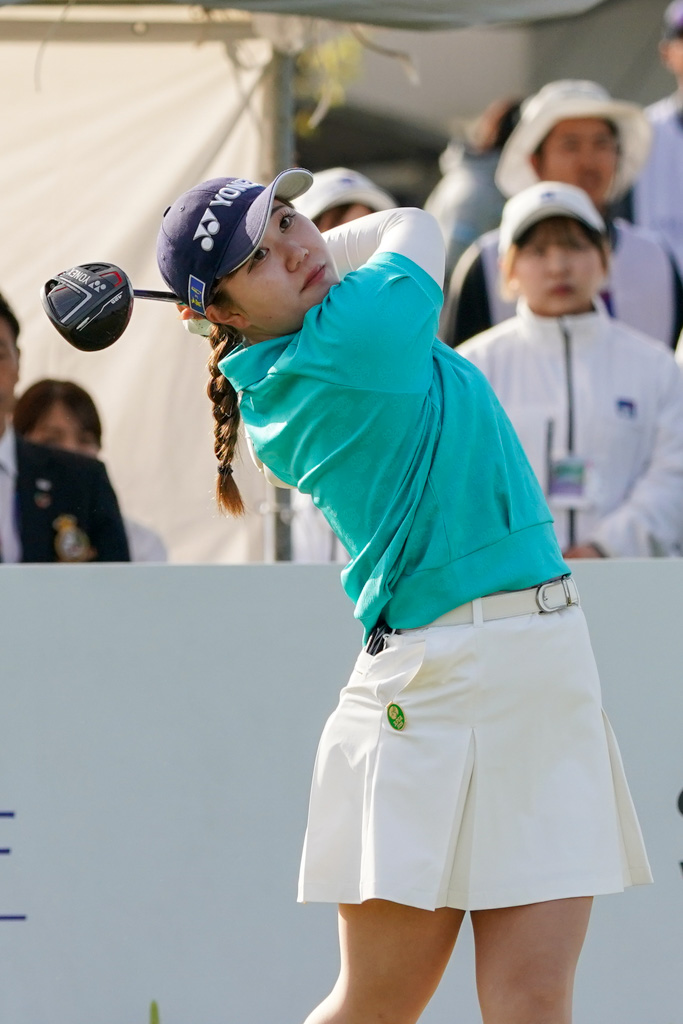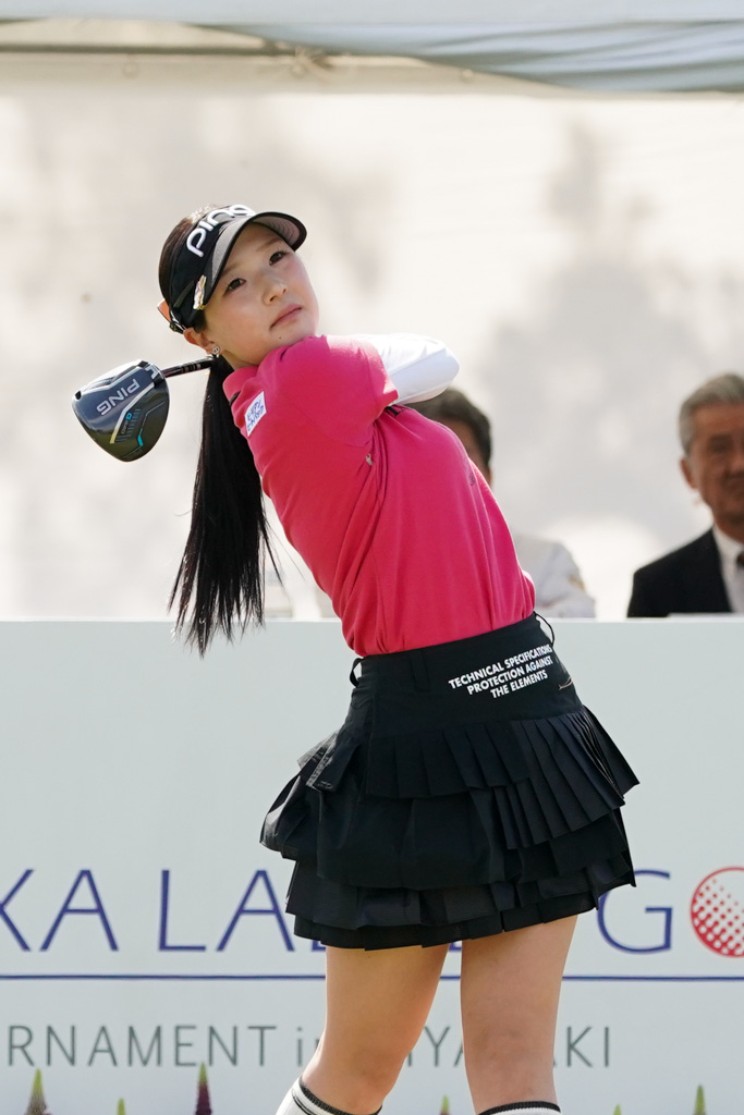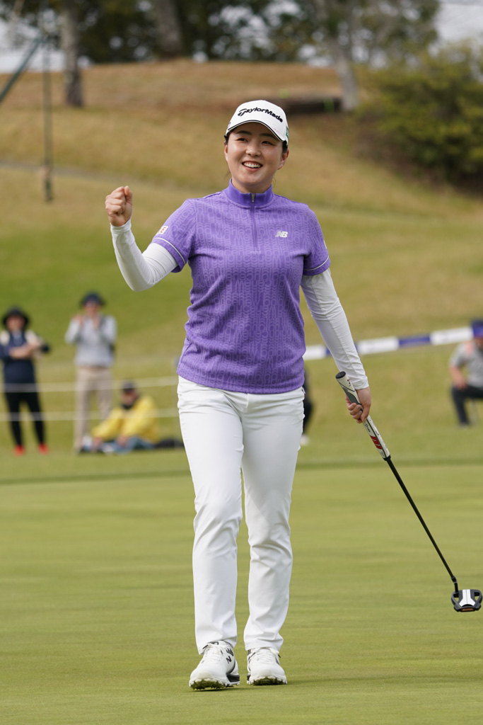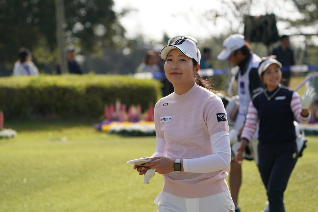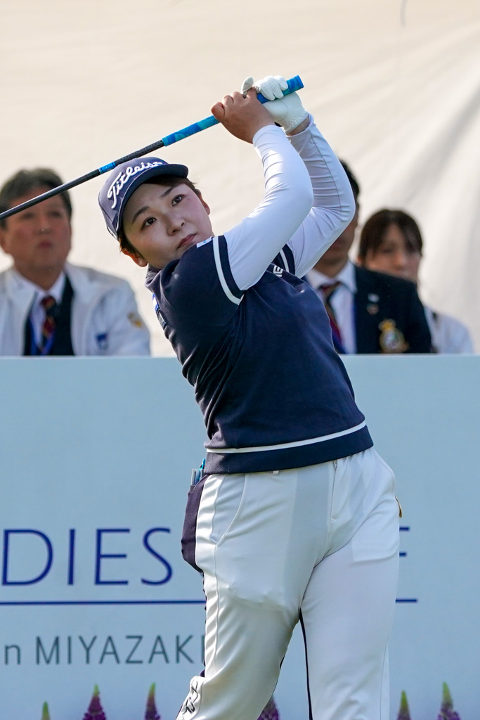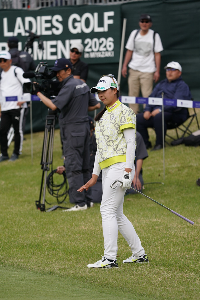 「(No.18でバーディー)本当にここで決めたら盛り上がるなと思ってライン読んだので、入ってくれて本当に嬉しかったです。本当に通い詰めているコースなので、すごくいいイメージは残っています。明日以降もたくさんバーディーとって、宮崎の皆さんを盛り上げたいなと思っています。本当に宮崎でプレーできるのが幸せです」