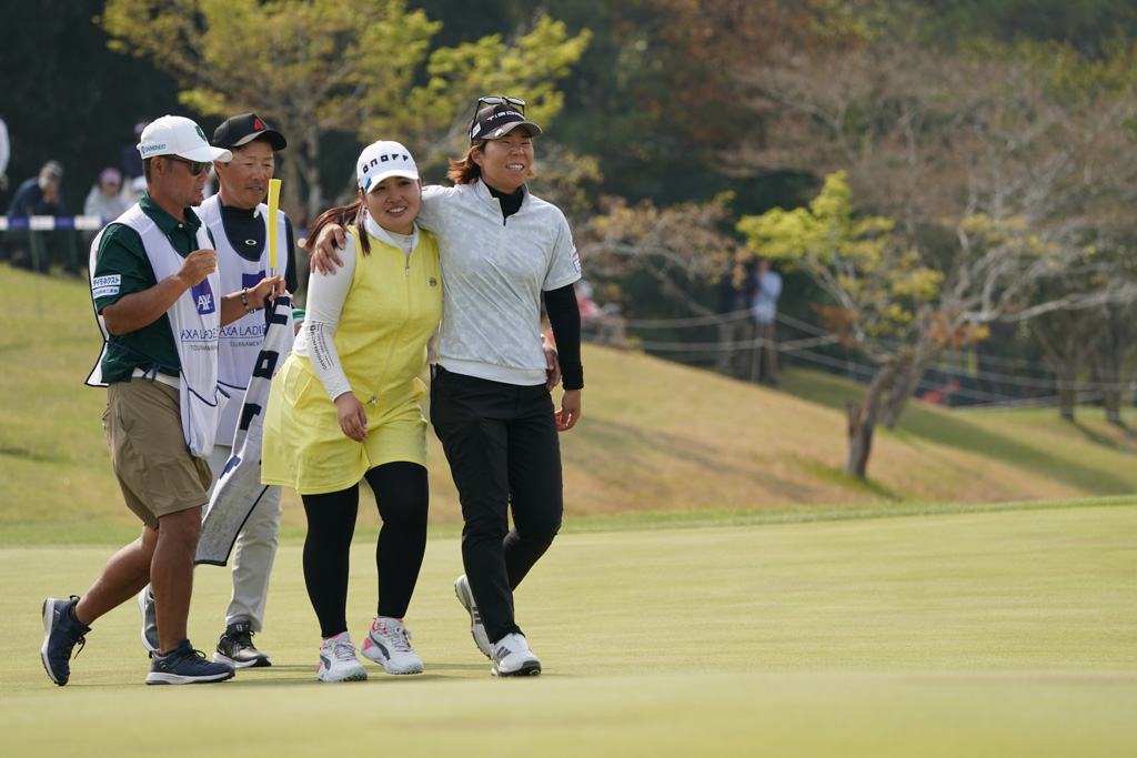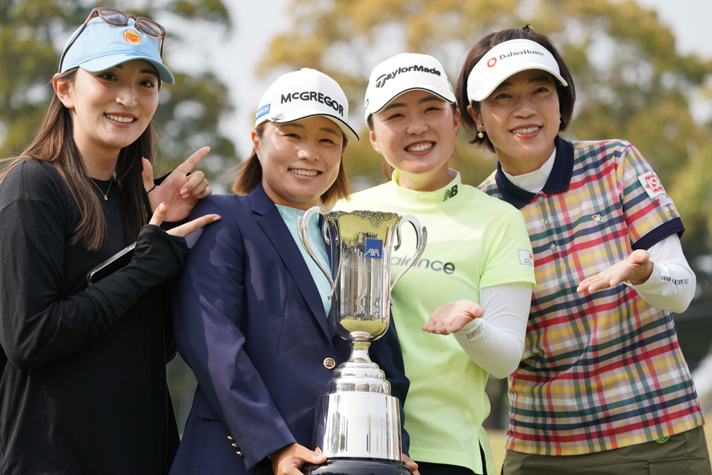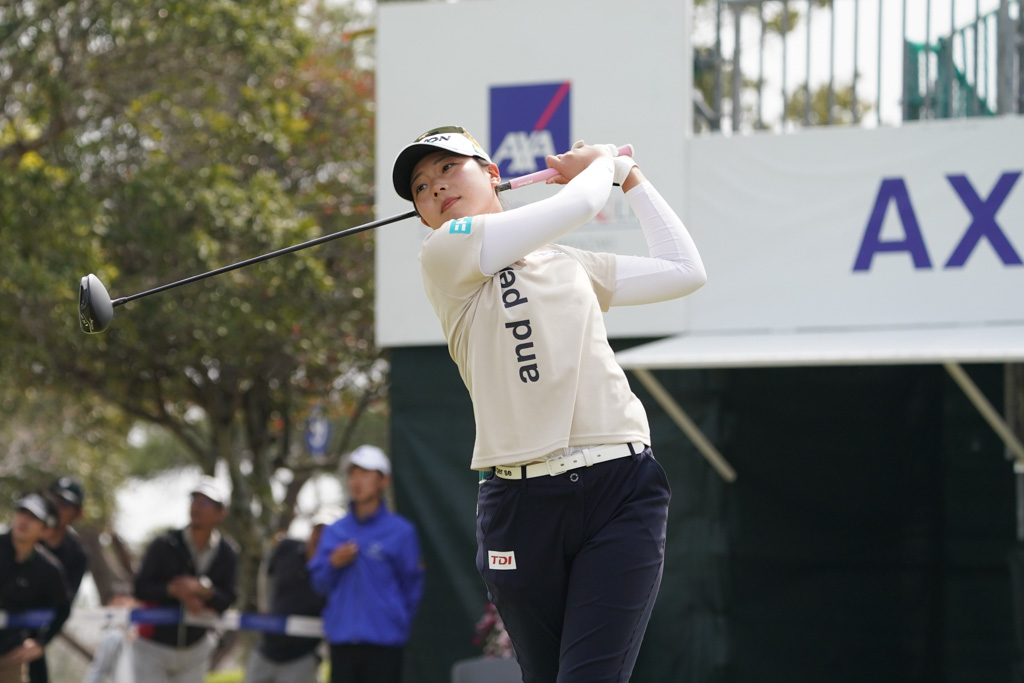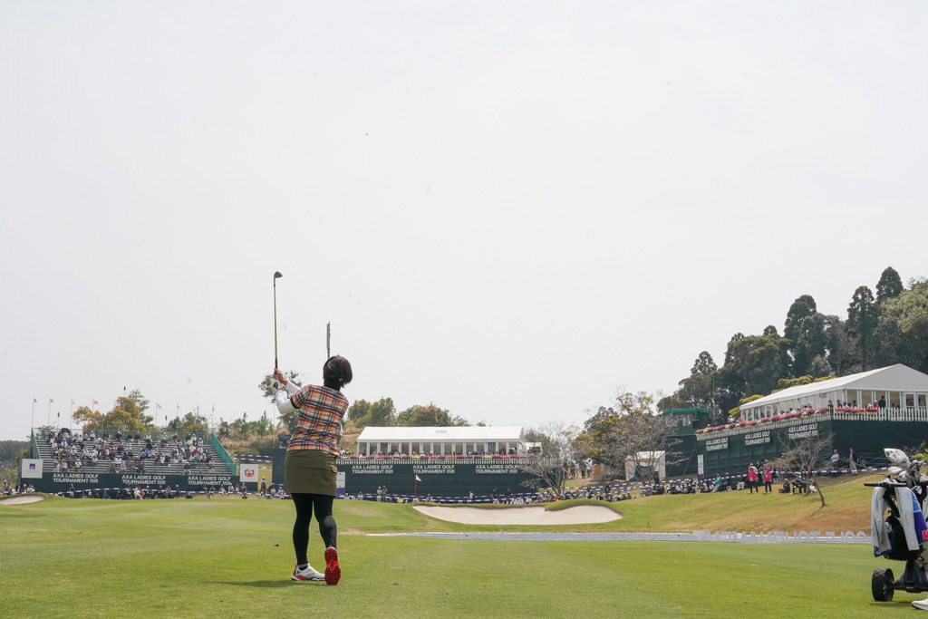 アクサレディスゴルフトーナメント in MIYAZAKI2026最終日、連日の好天候でスコアを順調に伸ばす選手がひしめく中、地元出身の永峰咲希が上がりの4ホールでバーディーを奪い、今日1イーグル6バーディー2ボギーの通算13アンダーで優勝、ツアー4勝目を手にした。昨日の予選ラウンド2日目にコメントした「日本で一番勝ちたい大会、優勝してたくさんの方に感謝の気持ちを伝えたい」という思いを見事に現実のものにした。永峰咲希と同組で首位争いをしていた申ジエは2打差の2位、今日28位タイスタートの菅 楓華も7バディーノーボギーで一気に3位までスコアを伸ばした。