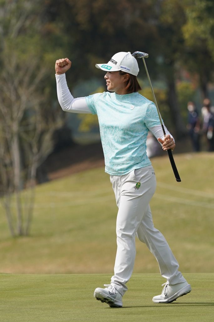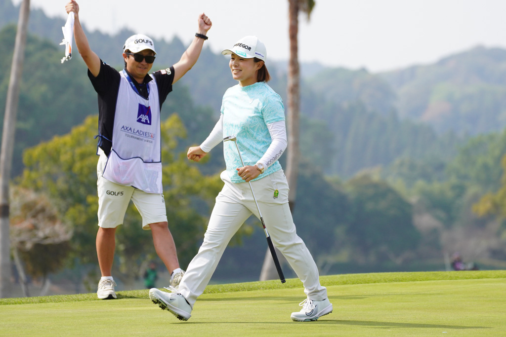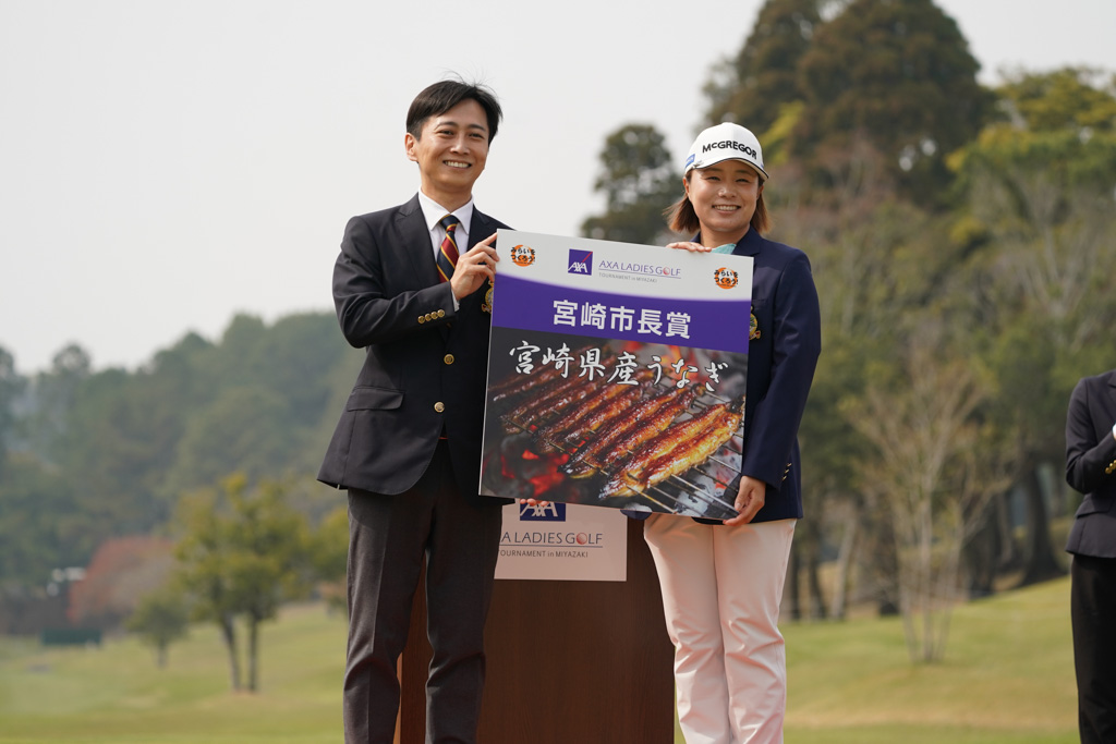 「本当に今日はいいプレーができたので、納得いくゴルフでした。(地元宮崎でプレーして)過去一番に多いくらいのギャラリーさんだったので、昨日は予選通るか通らないかくらいの中でもたくさんの方が来てくれたので、それが力になって頑張ることができました。年間3勝を挙げられるように頑張っていきたいなと思います。」