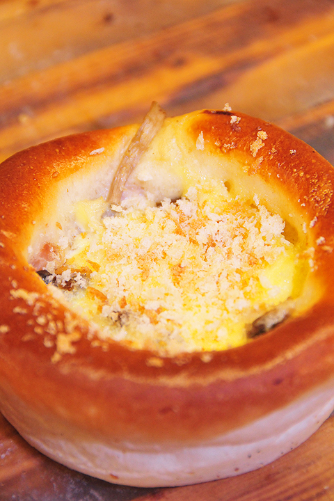 亀のパン・きのこマヨ焼き