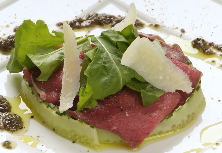 ABBA・宮崎和牛のカルパッチョ黒オリーブソースで