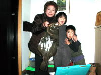 なんと小学2年の女の子が・・・お父さんに手伝ってもらって,やっとあげましたが、あまりの大きさに怖くてつかめなくてばあちゃんに握ってもらって写真撮影です。すごく大きくないですかー? |