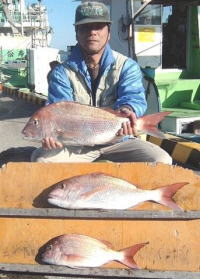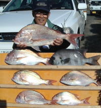 船釣り 鯛(600〜2,5kg) 石鯛(1,4kg) 金丸氏 |