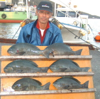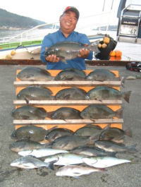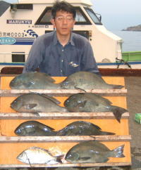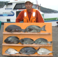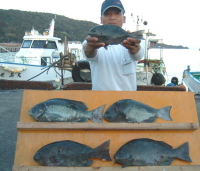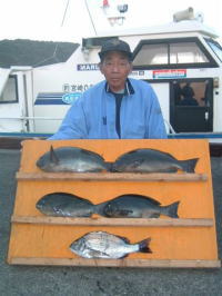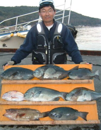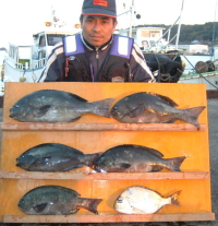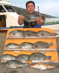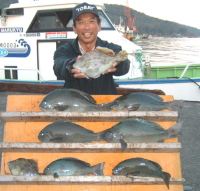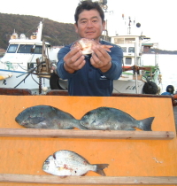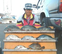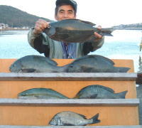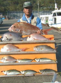 鯛(5kg)石鯛(2,3kg)他、鯵(4〜500g) 永野氏 |