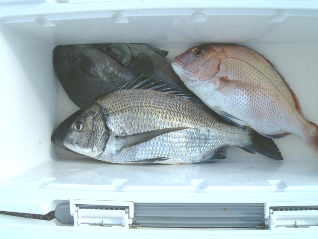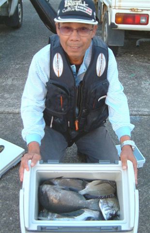 チヌ、シマアジ、クロの小さいのなどいろいろ上がっていました。