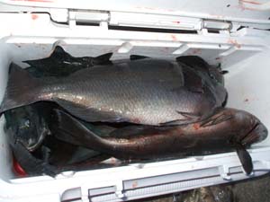 左:甲斐さん 山本さん 800〜1,5キロ 15枚/右:延岡 甲斐さんのクーラー