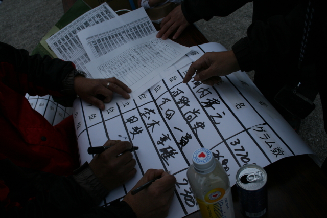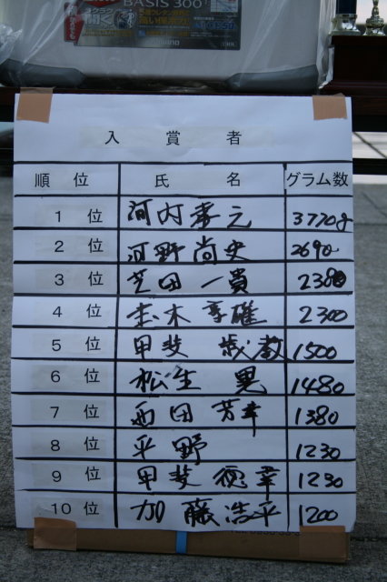 65名参加中検量されたのは20名、用意された飛び賞が余ってしまい、急遽優勝者の河内さんとのジャンケン大会があり大変盛り上がっていました。