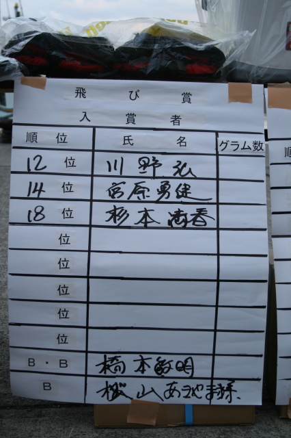 世話役の川野弘さんはじめ、役員として準備をされた甲斐雄二さん、宮原勇健さん、橋本貴幸さん色々と有難うございました。また選手の皆さん本当にお疲れ様でした。今回は釣果には恵まれませんでしたが、次は良い釣果に恵まれるのではないでしょうか?また次回の開催を楽しみにしています。