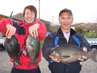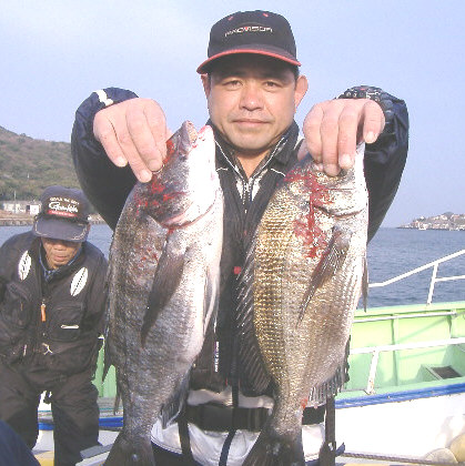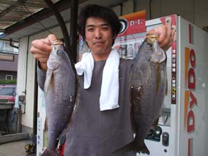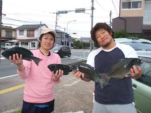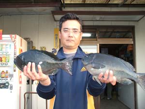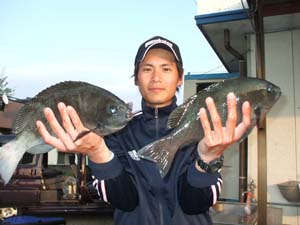 釣れた人で1kg〜1.5kgのクロを2人で14枚にチヌの良型が1〜2枚でした。