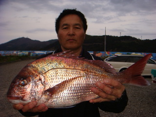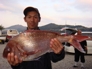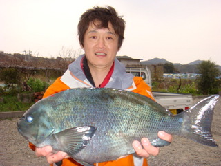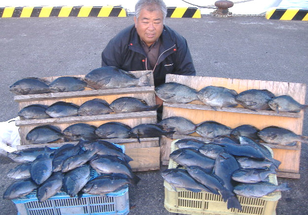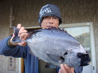 1日:チヌ1kg〜1.2kgが6枚、水イカの800g〜1.8kgを10パイでした。(エギ)