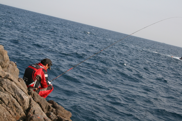 5日昼:波が有り小黒でクロ,チヌがボチボチでした。夕方には大分凪になってきました。