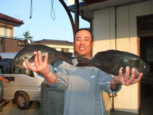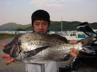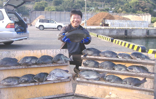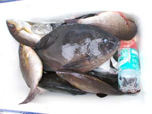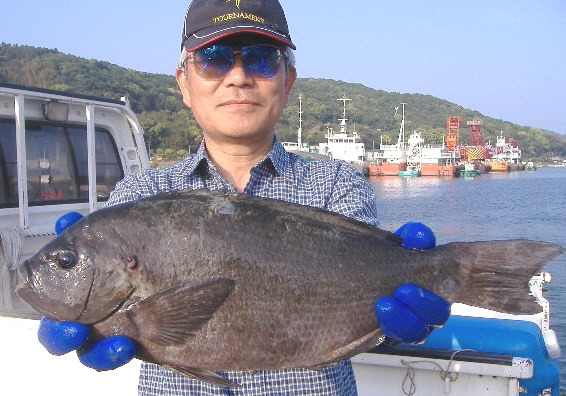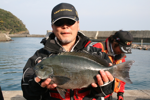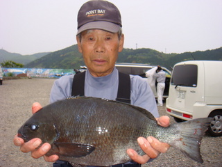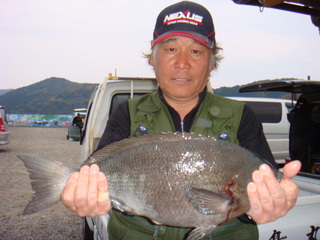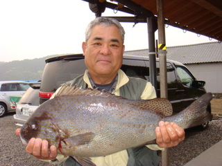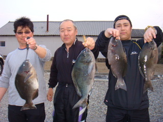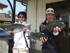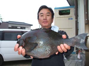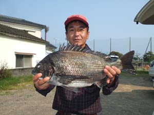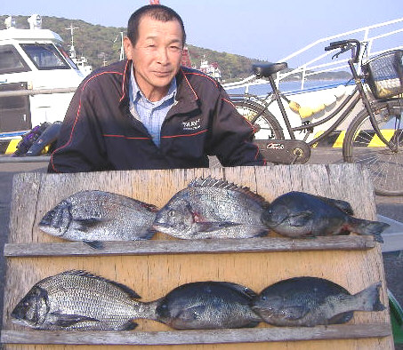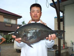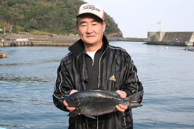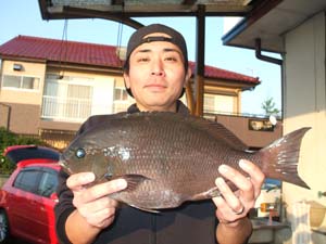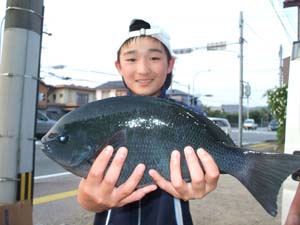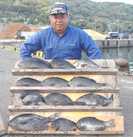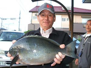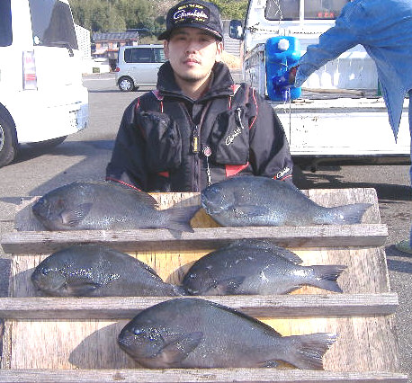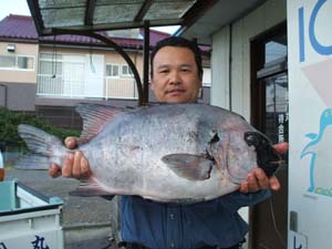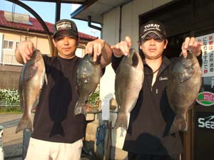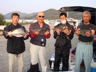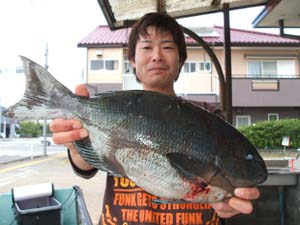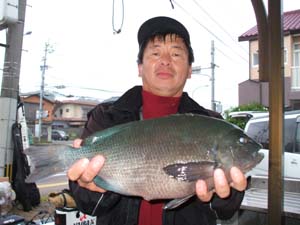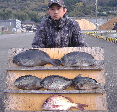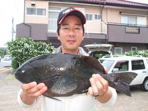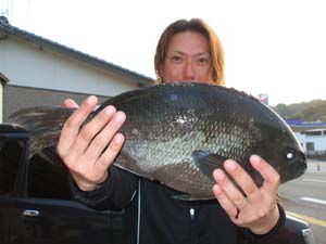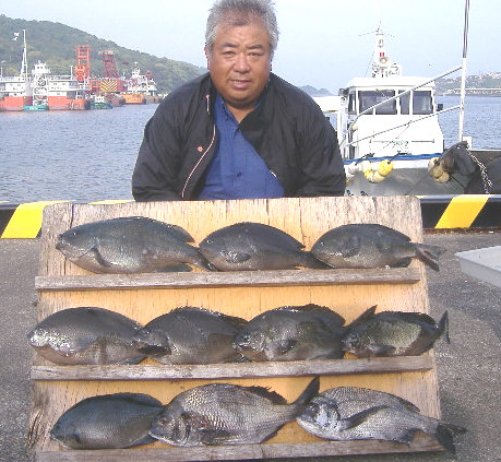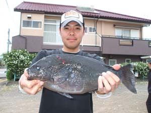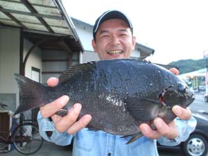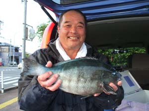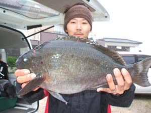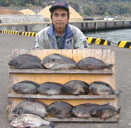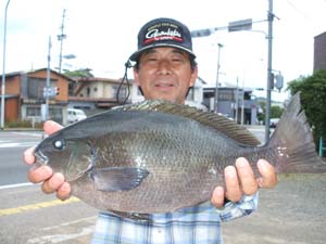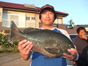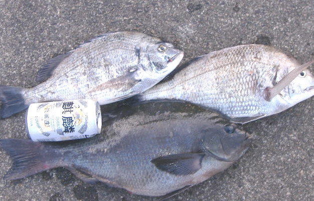 チヌの1kg〜1.8kgが5枚、釣っている人でアジの25cm前後が14〜15枚でした。