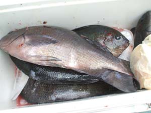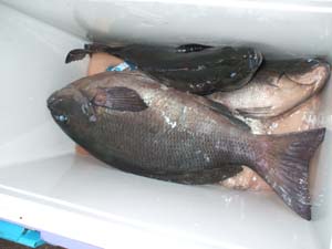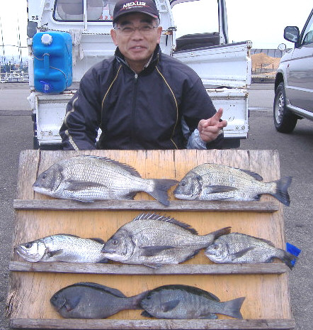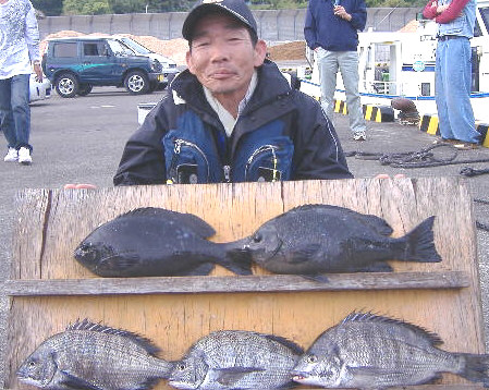 6日:チヌの1kg前後が全体で17枚、クロの700g〜800gが4〜5枚でした。