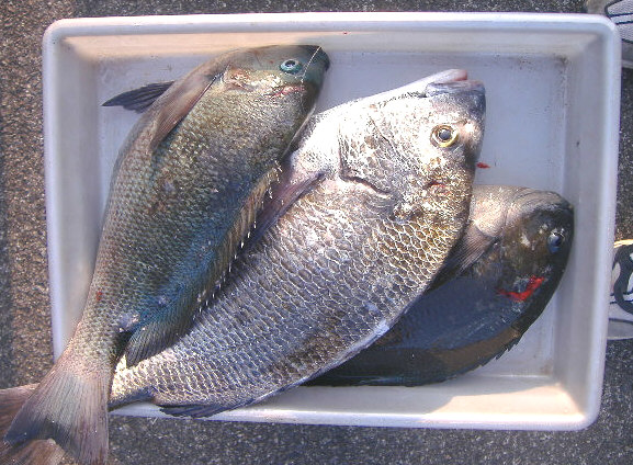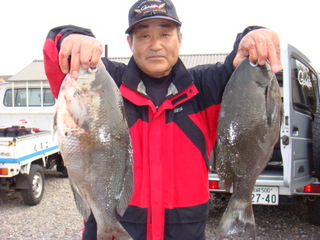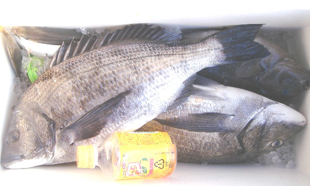 チヌが3枚、クロが2枚でした。いずれも800g〜1kgでした。