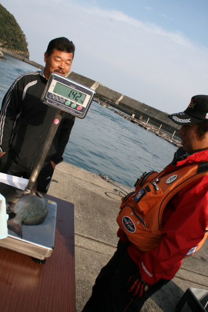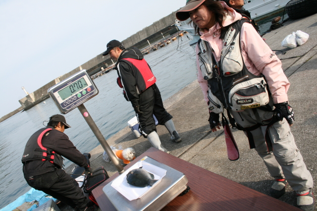 今日は全体的に楽しめたようです。700g〜900gを中心に15、16枚釣っている人が一番でした。大きいのは1.6kgありました。他にはチヌの2kgサイズを頭にチヌもかなり釣れていました。