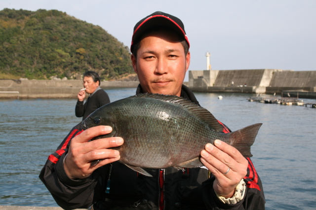 喰いが悪く、釣っている人で800g前後を2〜3枚でした。他にチヌやキンツが釣れていました。