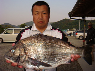 今日はクロは釣れず、チヌばかりでした。釣っている人で5枚でした。