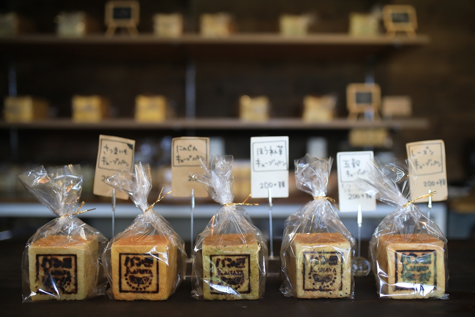 パン工房のテーマは『食パン』で、ふわふわとした食感、防腐剤や添加物を使用しない安全性を追求し、さまざまなバリエーションで作られています。また、気軽におやつ感覚で食パンを頬張れるように、そして見た目にも楽しめるようにとのコンセプトから、ひとつひとつがキューブ型につくられ、可愛らしく店内を彩っています。