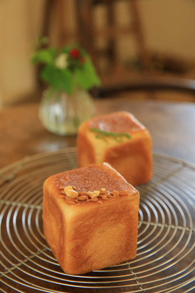 ▲甘さ控えめの自家製キャラメルクリームを使用したキューブ型パン。コーヒーや紅茶との相性が抜群です!