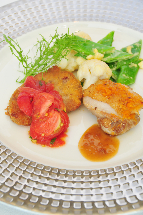 タツヤカワゴエ ミヤザキ・子牛のカツレツとチキンの柚子胡椒焼き