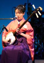 会場内に人もたくさん入りだした頃、いよいよこの日のコンサートのスタートを告げるブザーが鳴り響き、大きな拍手と共に演奏が始まりました!まず初めにこの日のオープニングアクトとして登場したのは地元延岡を拠点に活動を続け、また今年度の津軽三味線全国大会で初出場ながら入賞を遂げた、津軽三味線森山流の森山由希華さん!たくさんの方を前に力が入りすぎたのか、1曲目から三味線の弦が切れる(!)というアクシデントがありましたが、特に焦ることもなく直ぐに持ち直し全国大会入賞者らしい素晴らしい演奏を披露してくれました。実は今回のコンサートタイトルにもある"二胡"とこの津軽三味線は同じ流れを組んでいるようで、いわば二胡の親戚だそうなんです。そして同じく流れを汲む沖縄の"三線"も披露してくれました。