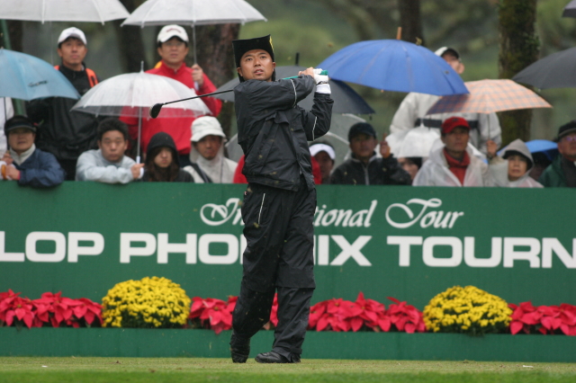 昨日から続く雨の中、今季女子プロゴルフツアーの締めくくりとなる『LPGA ツアーチャンピオンシップ リコーカップ』最終戦が宮崎カントリークラブ(宮崎市)で行われた。3rd ROUNDを終えて通算-6でトップに並んでいた横峯さくらと諸見里しのぶ。この日最終組でラウンドに望んだ両選手のプレーには互いの意地とプライドがぶつかる場面が随所に見られ、6番ホールまではバーディーを決めれば相手もバーディーを決めるなど、息もつけない程の大接戦となりギャラリーを沸かせていた。しかし、7番・9番・15番ホールで横峯がバーディーを決め3打差となった17番ホール。諸見里は2ndショットがうまく決まらずグリーン左の深いラフへ…。しかし、直接チップインを狙うもうまく決まらず・・・。結果4オン3パットの3ボギー!終わってみれば順調にスコアを伸ばしていった横峯が2位7打差と大差をつけ今季の目標としていた3勝目、そして国内メジャータイトル初の優勝となった。一方、この日首位から3打差の3位スタートとなったディフェンディングチャンピオン、大山選手(宮崎)は通算-1の5位タイ。+1の8位だった宮里選手はこの日67と実力を見せるも2位タイの-4という結果だった。