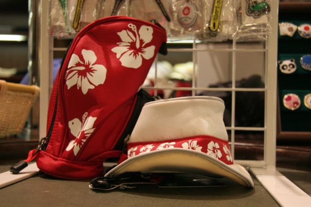 大会中、メインゲートを入ってすぐのところには、シェラトン・グランデ・オーシャンリゾート地下1階にありますダンロップフェニックストーナメント グッズショップ ゴルフパークと フェニックスカントリークラブ内プロショップによる大会グッズやゴルフ関連商品を扱うショップが並びます。店内も広く品数も豊富なので、大会期間中はぜひ一度立ち寄ってみてください。さてここから先は、いくつかの商品をピックアップしてご紹介します。