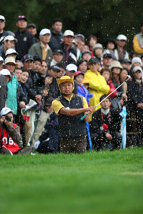 思わぬアクシデントに見舞われた横峯。動揺してしまったのか、1stが右バンカーへ!しかしボールは埋まらなかったようで、そのままロングクラブで2ndを打つ。対する諸見里、キチッと3rdをピン奥約7~8mの距離へナイスオン!3オンを狙った横峯のショットは、若干乱れバンカー奥のラフへ…。果敢にチップインを狙うが、ピンそばで止まってしまう…。そして諸見里はキチッとバーディーを奪い、横峯に2打差と迫った。