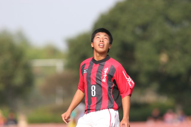 後半が始まると鵬翔高校が積極的に攻撃を仕掛ける。交代出場の角島の動きはよく、前線でポストになりボールをさばく太田からのボールで再三チャンスをつかんだ。後半8分ついに試合の均衡が破れる。右サイドをカウンター気味に突破した角島がフェイントで相手DFを交わしシュート!ゴールが決まりついに鵬翔高校が1点を先制。