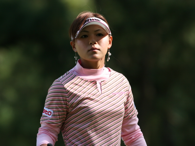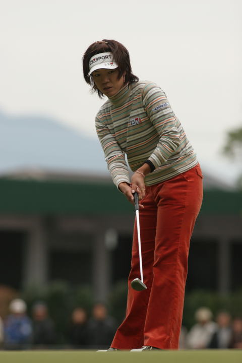 ドッグレッグの7番ホール。横峰の2ndはピンそば左、諸見里の2ndはピンそば右へと共に譲らずナイスオン!ピン奥から下がり傾斜のついているグリーンでのパット、先に打ったのは諸見里。右下がりのバーディーパット…、しかしわずかにそれてしまう!!それを参考にしたのか、横峰は左下がりのグリーンをキチッと読み、待望のバーディー!ついに均衡が破れ横峰、1打差をつけて単独首位となった。