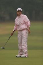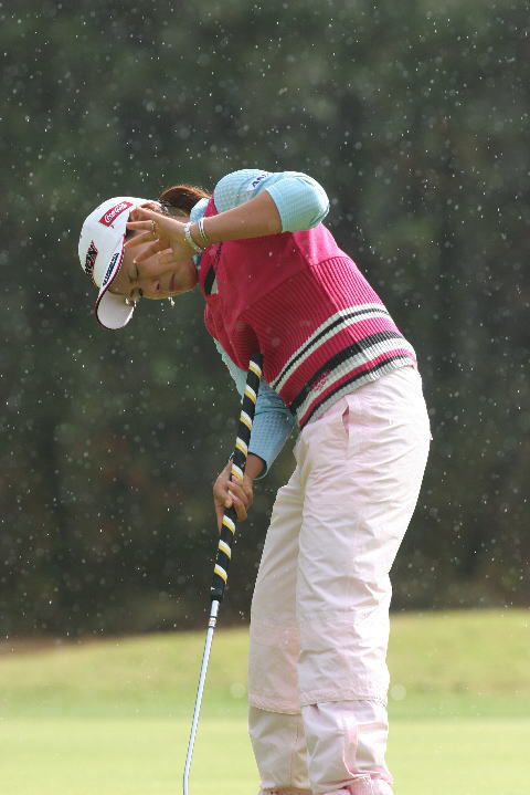 またしても雨が降り出した後半スタートの10番ホール。2ndでピンそばにつける諸見里。そして横峯の2ndがバンカーのヘリに当たるも、転がった方向が良くナイスオンする。若干パットの短い諸見里、そして横峯はボール一つ分ずれてしまい、このホールも共にパーセーブとした。