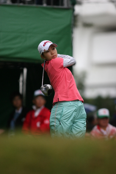 2選手共にメジャー初制覇に向けてのラウンドとなるこの日。天候はあいにくの雨だが、両者共に気合の入った表情でティーショットへ向かう。しかし横峯は気合が空まわりしたか、それともプレッシャーからなのか2ndがグリーンを捉えきれない。逆に諸見里は2ndがピンそばへピタリと合わせる完璧なショット!なんなくバーディーとした。一方、横峯はプレッシャーのかかる場面だったが、快心のチップインバーディー!いきなりスーパーショットが飛び出し、今日の接戦を予想させた。