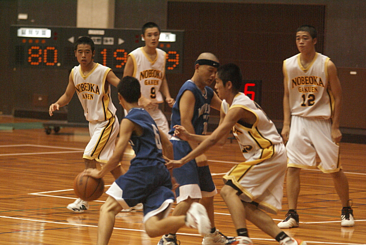 延学は選手層の厚さを活かし次第に選手を交代させながら試合を進める。前半終了間際には23点差に。控えではあるがチームのムードメーカーであり、良い試合の流れを切らさない重要な役割を福留がになった。どんな時でもバスケットを楽しそうにプレーする姿に選手は引っ張られてメンバーが代わっても点差は一考に縮まらない。